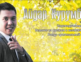Айдар Курумбаев - это очень опытный и крайне креативный ведущий. Пожалуй, один из немногих, кто правильно воспринимает как миссию, так и дословный перевод значения этой благородной профессии showman! Айдар умеет вести шоу и умеет его делать из всего, что окружает праздник. К примеру, в городе Павлодар сотни ведущих получают возможность работать на мероприятиях только в те дни, когда Айдар занят. И этому существует множество причин: Айдар чутко улавливает атмосферу в зале и подстраивает свою манеру ведения под настроение гостей. Чаще всего этот настрой он создает самостоятельно. Айдар очень плавно, легко и непринужденно переходит с казахского на русский и делает это без повторов в речи. Если будет необходимо, он споет, организует флэш-моб, раскачает танцевальный антракт, проведет, сколько хотите игр. Айдар сделает все, чтобы не повторяться в одном и том же коллективе. Айдар Курумбаев - профессионал с 7-ми летним стажем и конечно он знает секреты профессионалов. Это не тот случай, когда свадебный тамада не в силах справиться с корпоративным торжеством. Айдар ведет все, что нуждается в мастерском подходе шоумена! Пригласите Айдара и его команду на свое шоу, и вы забудете о любой альтернативе!