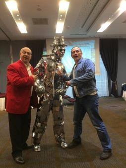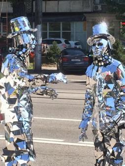 Зеркальное шоу – необычный вариант для встречи гостей в начале мероприятия. Дуэт с радостью поучаствует в фотосессиях с вашими гостями, и украсит ваш вечер своим необычным видом.