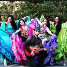 Любое мероприятия с участиями этих зажигательных людей приобретало позитивное настроение и атмосферу искреннего веселья!Способные расшевелить самых грустных гостей.В программе песни,пляски ,постановочные танцы,интерактив с гостями поздравления виновника торжества.Программа длиться в среднем 15 минут,и за это время точно никому скучать не придётся!Состав полный 6 человек певцы,гитарист ,танцовщицы .4 номера 1 танец зажигательный ,2 танец романс поздравляем виновника торжества,3-4 песня интерактив с гостями .из инструментов бубны ,гитара .60000 тысяч .Упрощенный состав 5 девочек только танцы 4 номера 1 танец зажигательный,2 танец романс ,3-4 песня интерактив с гостями 35000 тысяч.