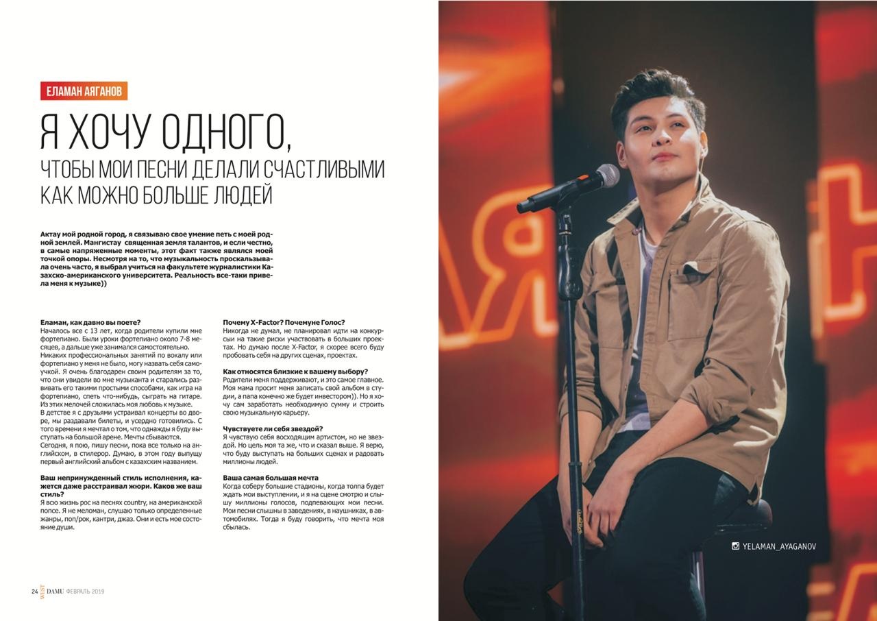 Еламан Аяганов - финалист казахстанского проекта Х-Фактор 2018. Еламан востребован на частных мероприятиях. Уникальный стиль – как во внешнем облике, так и в сценическом образе. Композитор, певец, исполнитель песен на русском, казахском, английском языках, а также авторских песен.