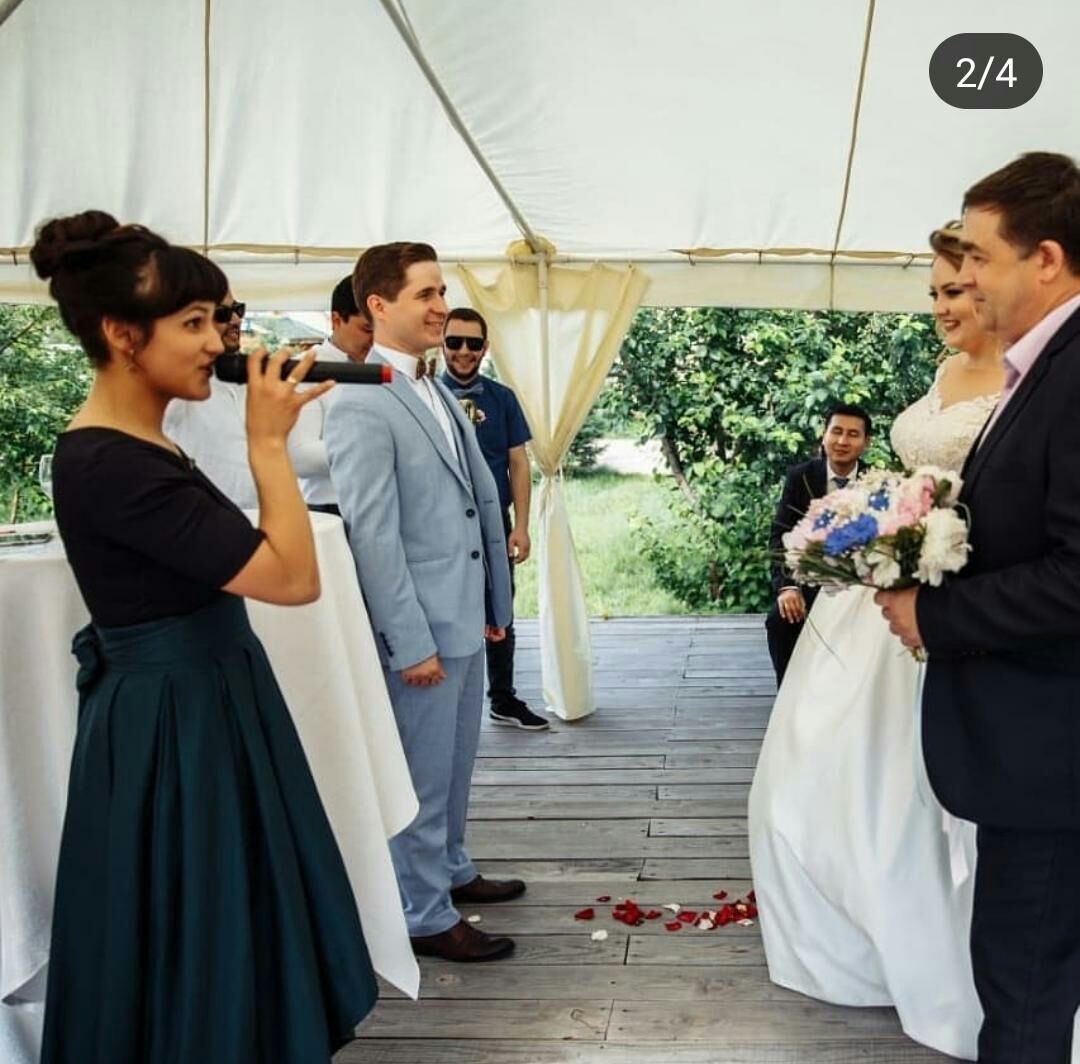 Составленный текст демонстрирует все самые яркие события в жизни пары – с момента знакомства и до самого торжества. История, переданная устами церемониймейстера или лично молодоженами, заставляет каждого гостя проникнуться всеми трогательными моментами – и никто не останется в стороне. Хотите нестандартную регистрацию брака от дипломированного церемониймейстера – обращайтесь к Раде Аубакировой!
