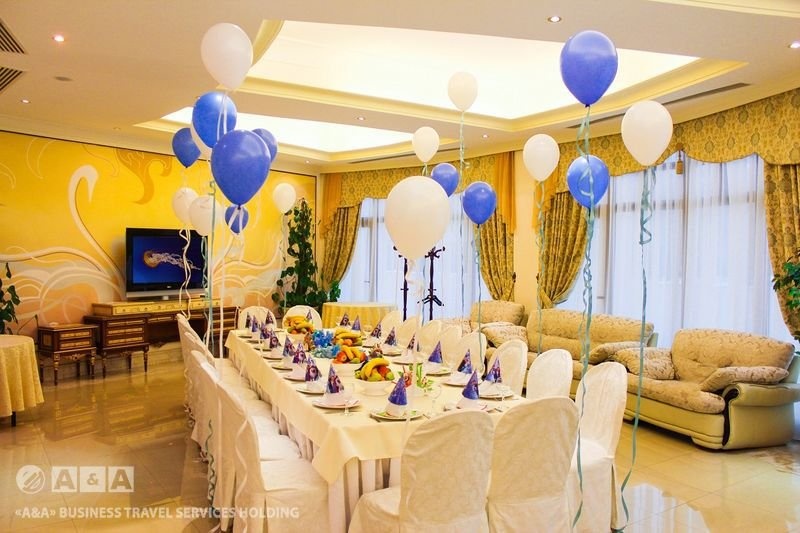 Всё необходимое для шоу программы необходимо завозить с собой, так как стационарного в зале ничего нет. Немаловажный факт, учитывая, что ресторан в здании отеля, шуметь и праздновать можно только до 23:30, поэтому сбор гостей и фактическое начало вечера планируйте с пониманием этой особенности.