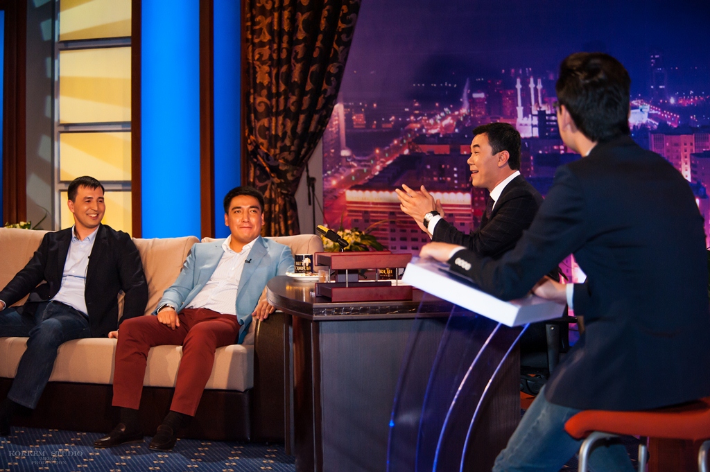 В гостях у Нурлана Коянбаева были два бизнесмена, Вы увидите это в следующей передаче, мы не станем говорить о том, что Вы и так в скором будущем будете знать. В этот день состоялось три съемки. Объявили 5-минутный ПЕРЕРЫВ для поправки грима, в этот момент ведущий начинает разговаривать со зрителями и задавать им вопросы. Оказалось, в зале сидел парень, который приехал из Костаная на шоу, на что Нурлан Коянбаев поинтересовался: «Жол жақсы ма?»