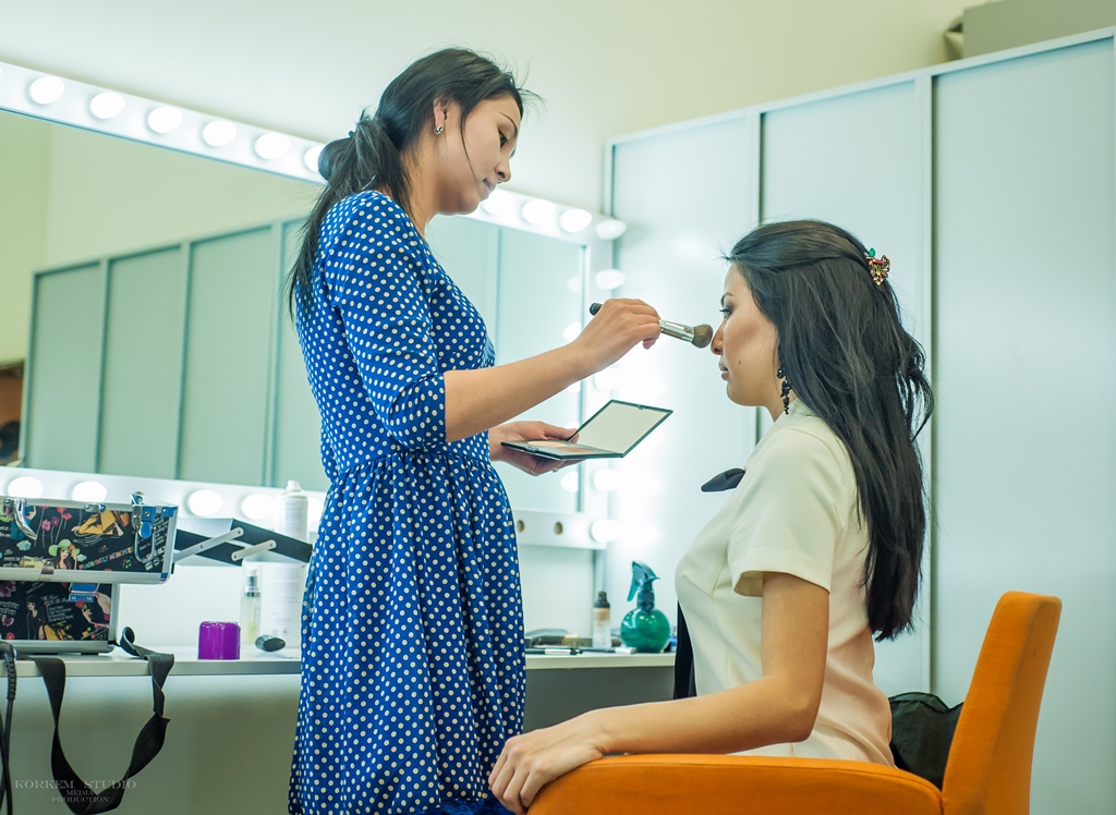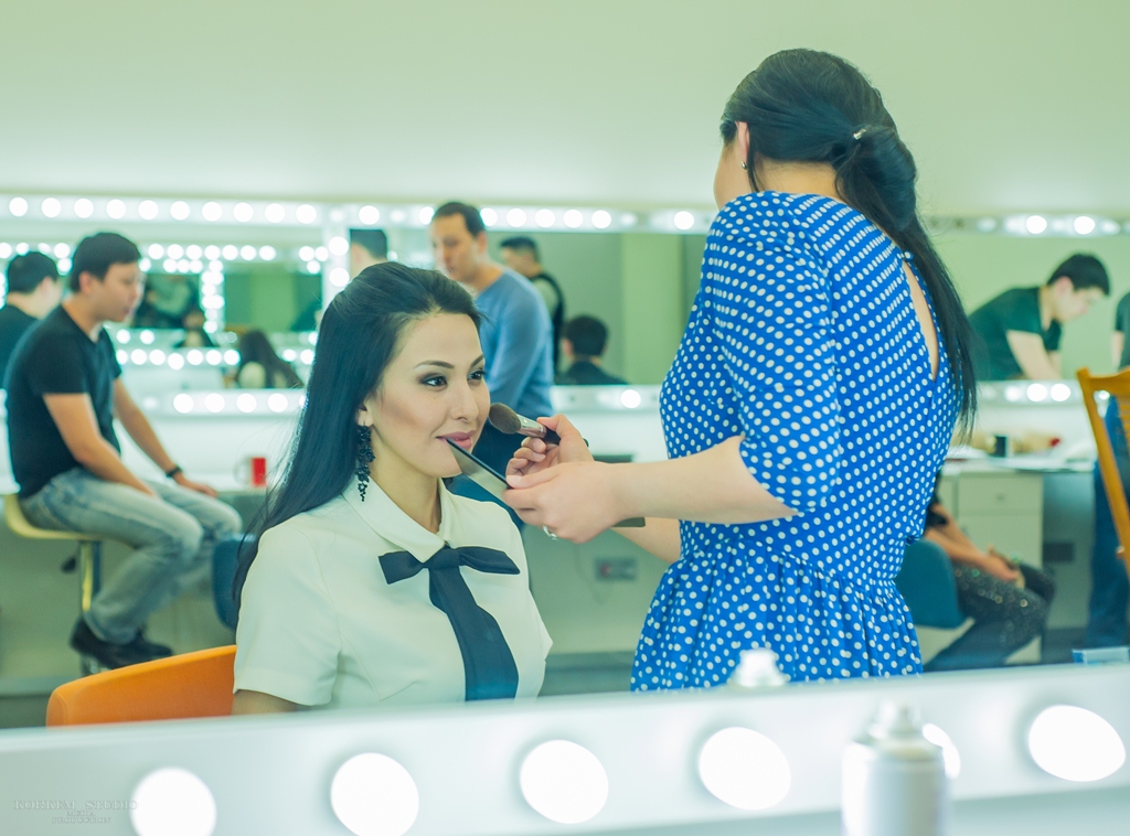 Сейчас я редко смотрю телевизор, но раньше комедийные передачи были сопровождающими моего свободного времени, мне всегда казалось, что за кадром стоит человек, который вытаскивает табличку: «Хлопайте!» А в случае с Нурланом Коянбаевым аплодисменты продолжаются даже во время нанесения грима, пока в этот момент он рассказывает историю про коррекцию бровей. Не помню весь диалог, но была фраза: «Выщипай меня».