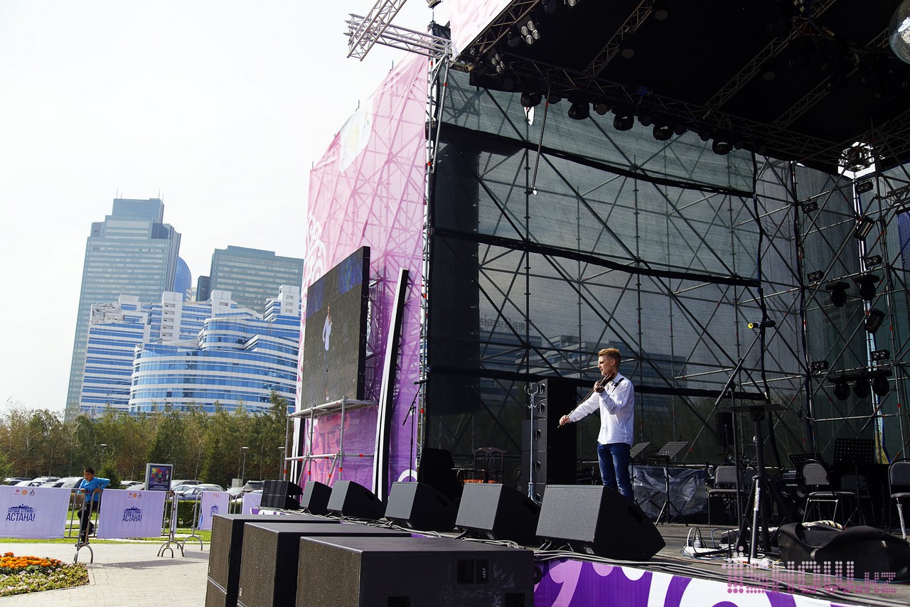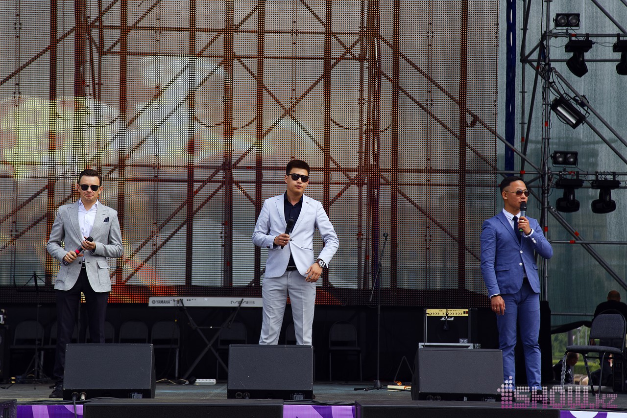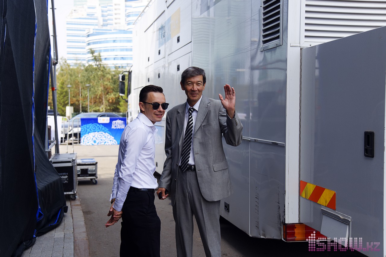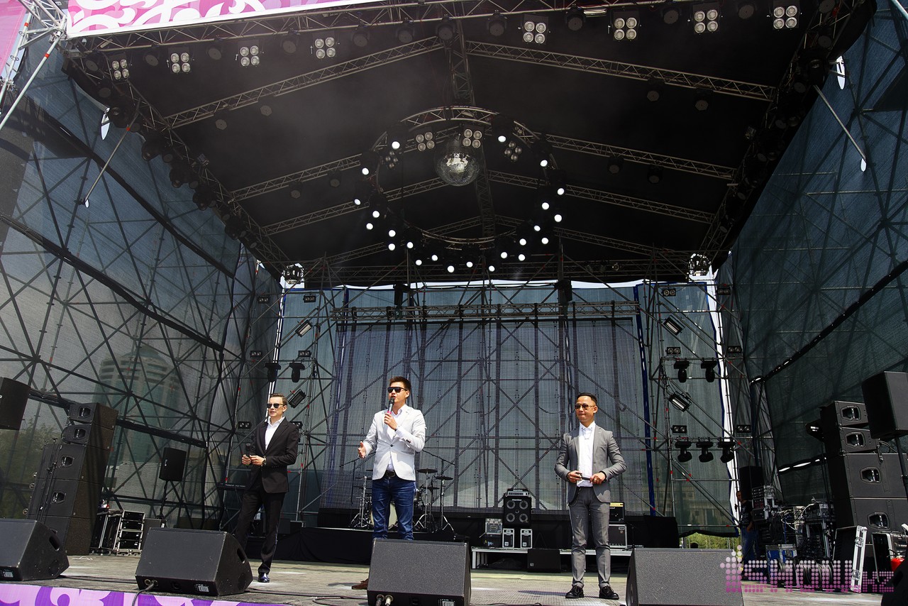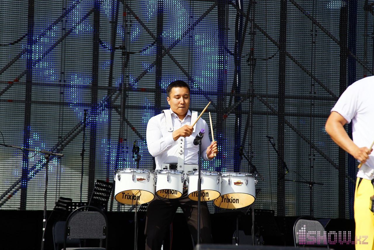 Видите установку посреди зрителей и человека на ее втором этаже? Это тот парень Зато вот пятого июля, «вчера», вышел самый лучший день: Алмас Кишкенбаев, Жанар Дугалова, Ринат Мальцагов – все они были «вчера». Помимо звезд, очень много крутых артистов показали красивейшие голоса, красивейшие номера и красивейшие наряды. Пятого тоже был дождь, но легкий, люди слегка расходились, но все равно их удалось собрать у сцены – заслуга шикарнейшего рок-выступления Kobzon Band. Сначала люди собирались медленно, но под звук грамотной и гармоничной аранжировки лайв-бэнда уже часам к трем образовалась неплохая аудитория. Далее по программе выступал государственный оркестр.