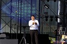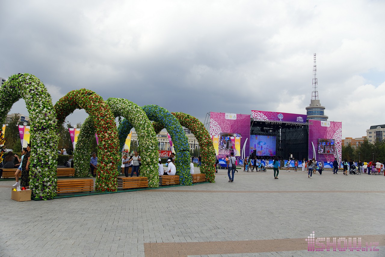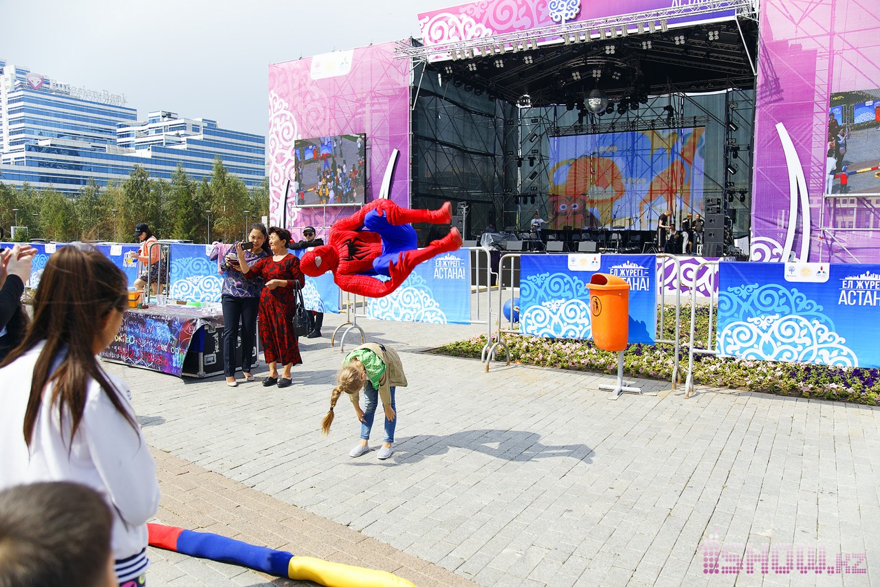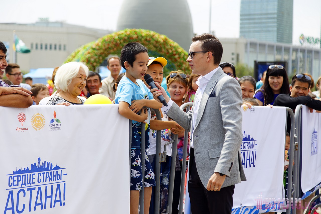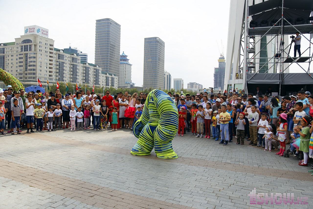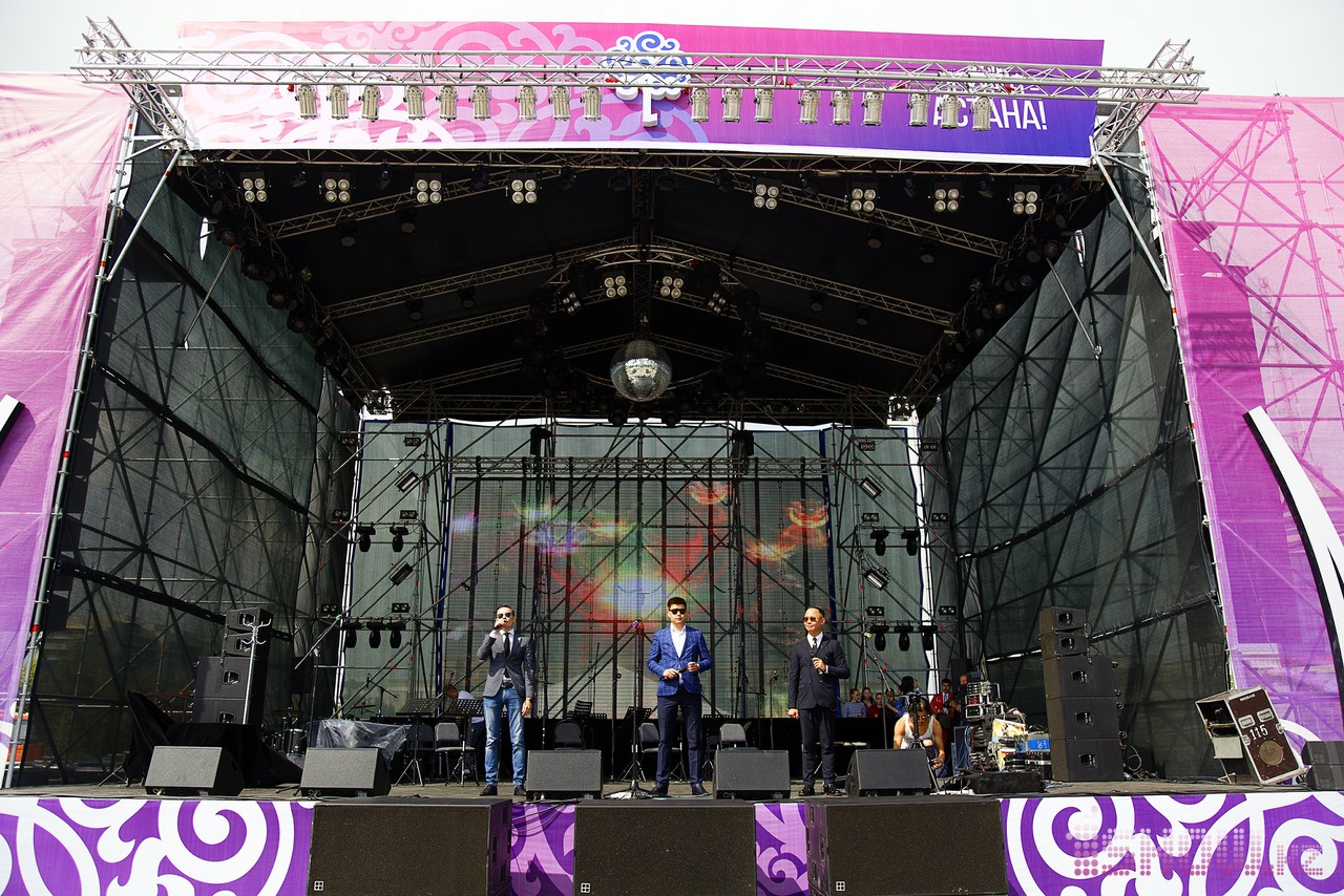 Видите установку посреди зрителей и человека на ее втором этаже? Это тот парень Зато вот пятого июля, «вчера», вышел самый лучший день: Алмас Кишкенбаев, Жанар Дугалова, Ринат Мальцагов – все они были «вчера». Помимо звезд, очень много крутых артистов показали красивейшие голоса, красивейшие номера и красивейшие наряды. Пятого тоже был дождь, но легкий, люди слегка расходились, но все равно их удалось собрать у сцены – заслуга шикарнейшего рок-выступления Kobzon Band. Сначала люди собирались медленно, но под звук грамотной и гармоничной аранжировки лайв-бэнда уже часам к трем образовалась неплохая аудитория. Далее по программе выступал государственный оркестр.