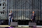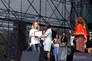 6 июля, небо уже сероеВ шесть вечера, когда оркестр свернул инструменты и уступил место другим артистам настал самый ажиотажный блок: ведущие раз за разом повторяли, что вот-вот выступят звезды и площадь наполнялась. Почему этот концерт вышел настолько крутым? Да, он был именно крутой, так как зрители простояли до самого окончания в 11 вечера, пролезали через ограду к сцене, пытались прорваться к гримерке со звездами. Гримерка, кстати, была позади сцены, но люди все равно скапливались и здесь тоже, невзирая на то, что они фактически пропускали концерт.