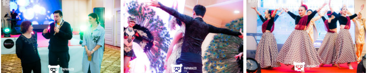 Ведущие сменяли друг друга, и наглядно показывали, насколько стиль ведения может быть разным – насколько один ведущий не похож на другого. Ведущих сменяли вокалисты и танцевальные коллективы, а также оригинальные номера. Например, программа в зале начиналась с шоу «Картина светом», от художников из города Караганда. Шоу-балет Руслана Кензикеева представил новый дуэтный бальный танец, Dream Way показали новый традиционный казахский танец в белоснежных костюмах. И конечно, звезды: зрителям довелось увидеть и пофоткаться с Кайратом Баекеновым и Маржан Арапбаевой. К концу программы в зал внесли огромный свадебный торт от студии «Sabayon».