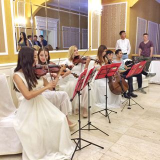 Настроение вечера задавал известный КВН-щик Кумар Лукманов вместе с соведущим Ардаком Ережеповым. Музыка – от группы Jewel, танцы – от театра Алексея Велижанина и студии Руслана Кензикеева. Также, в антракте играл струнный квартет и работал фокусник-иллюзионист. Всё было по времени и где-то к середине антракта в «Багратиони» появилась Народная артистка Казахстана Роза Рымбаева. Вежливо отказавшись от чая, воды и всего, что ей предлагали, она скромно ожидала своего выхода. Выйдя на сцену, она обратилась к родителям невесты и в красивой и искренней речи поздравила их с замужеством дочери, под громкие аплодисменты из зала. Роза Куанышевна исполнила 5 песен, среди которых «Любовь настала», «Жарасты жанұя» и другие. Люди подходили танцевать, фоткаться – Роза Куанышевна была не на сцене, а на танцполе и охотно фотографировалась с желающими. Покидала зал она тоже под аплодисменты и благодарные взгляды вспомнивших молодость взрослых гостей и молодежи, которой довелось вживую увидеть выступление артистки.