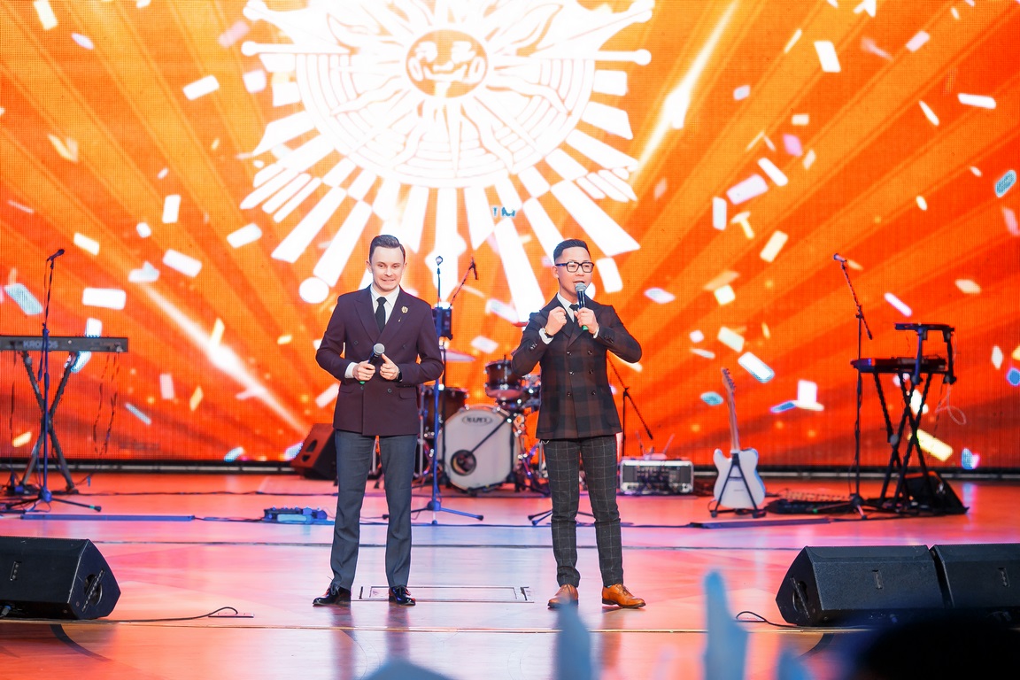 Программу, как и сам вечер, собирал наш менеджер Динара Ахмадиева. И сценарий расписан, и сюжеты отрихтованы. 2 круга генеральных прогонов, тщательные замеры с декораторами, работа с цирковыми подстраховками и еще много чего из клиентских «хотелок». Помимо 8 позиций цирковых артистов, за сутки до вечера, Динара организовала приезд команды КВН «Спарта»: ребята, не успев толком чемпионские медали КВН с себя снять, с аэропорта, так скажем, оказались у нас за кулисами. 15-ти минутное выступление «спартанцев» стало запоминающимся подарком для всех гостей. Также в этот вечер все смогли потанцевать со звездой казахстанской эстрады, Ерке Есмахан.