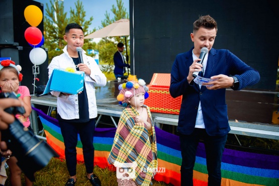 Дождь пролился после официального вступления, свою первую песню Антон исполнял уже под крупные капли, анонсировавшие неплохой ливень. Но нам повезло, циклон оказался мнительным, так и не решившись на серьезный полив. Вернувшись на сцену, сразу же принялись разыгрывать подарки от организаторов - большие комплекты для профессионального вязания. Розыгрыш проводился около 20-ти минут, большая часть презентов досталась детям и воспитанникам детских домов, которые оказались очень талантливыми на вязание! Следом за розыгрышем организовали разноцветный флэшмоб с перебрасыванием клубков пряжи по кругу. В финале получили очень красивое полотно, созданное всеми участниками. Ну а завершилось мероприятие показательными упражнениями от студии танца и фитнеса «Октава». Инструктор Ева провела ряд коллективных занятий со взрослыми и детьми. Это был, пожалуй, самый запоминающийся день августа в Астане!