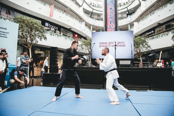 В этом и обнаружилась режиссерская находка Меруерт, она добавила элементы шоу даже в обычные показательные номера, для этого достаточно внести корректировки в проходку бойцов джиу джиутсу к примеру, сменить музыкальную основу под их вытсупления, добавить нужные реплики в комментарии ведущего и «лайтовая» разминка бойцов джиу джиутсу превращается в воинственный флэш мобб который ничем иным как примером для подражания служить не может! Молодежь собравшаяся на акции в ТРЦ «Хан Шатыр», с блеском в глазах и дрожью в коленях наблюдает за ударной техникой бойцов карате, за зрелищными бросками джиу-джитсеров и разумеется начинает осознавать что жить и развиваться то нужно именно так!