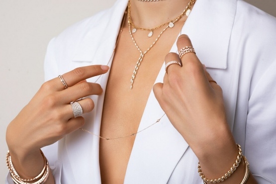 Смарт-гаджеты — полезный девайс, но если говорить об элегантности, то золотым наручным часам нет равных. Форма циферблата не играет роли: круглый, овальный или квадратный — золотой браслет в сочетании с золотой оправой часов автоматически делает ваш образ дороже и изысканнее. Это абсолютный фаворит у бизнесвумен и обязательный элемент делового стиля в одежде.