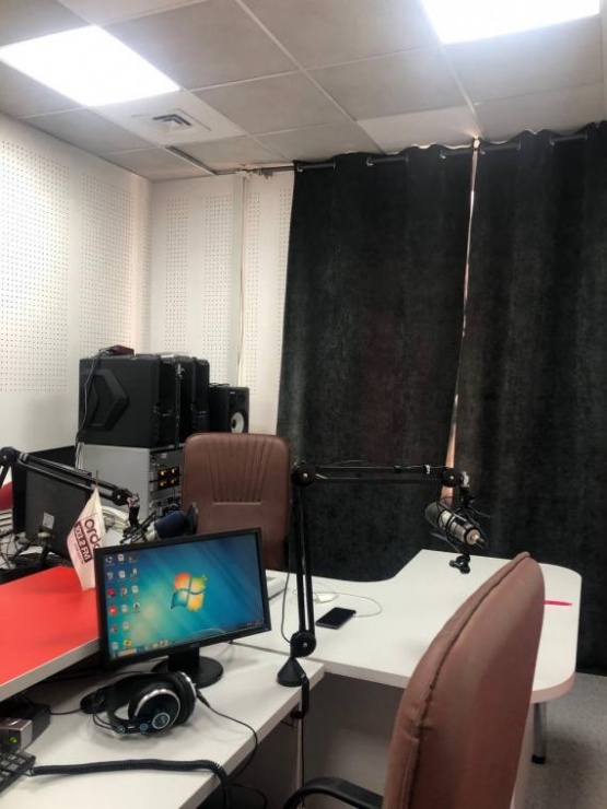 Как же случается та самая магия и что же необычного в нашем шоу? Посмотрим, на все происходящее моими глазами, что бы вы могли лучше представить себе картину, я постараюсь описать наше место работы. Небольшая комнатка с очень лаконичным столом в форме буквы “т”. При входе на стене можно увидеть большую надпись с названием радиостанции, а напротив окошко, которое чаще всего закрыто большими и толстыми шторами. Так же, можно увидеть четыре микрофона и массивные кожаные стулья коричневого цвета, в которых очень удобно вздремнуть, хотя я лично не проверяла. Мы сидим так, что окно оказывается у меня сзади, а впереди я вижу ведущих, справа Надежду, а напротив Антона, получается небольшой треугольник. В таком комфортном составе, мы проводим два часа нашего вечера.